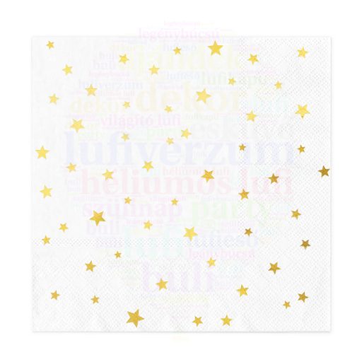 Arany Fehér Színű Csillagos Parti Szalvéta - 33 cm x 33 cm, 10 db-os