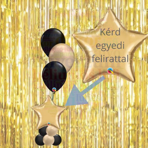 Asztaldísz - arany csillagos alap 3 db héliumos lufival