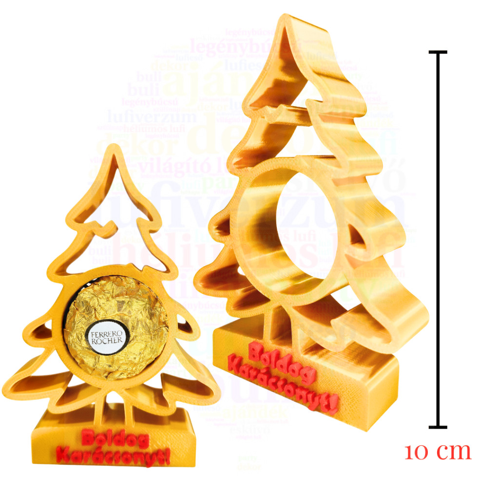 Ez az egyedi készítésű arany színű, 3D nyomtatott karácsonyfa egy különleges, mégis praktikus karácsonyi apróajándék, amely tökéletes választás, ha valami mást adnál, mint a szokásos csokit vagy üdvözlőkártyát.