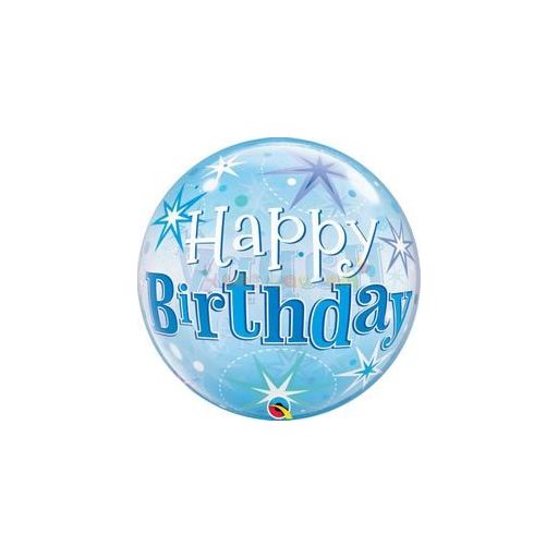 22 inch-es Birthday Blue Starburst Sparkle Szülinapi Bubbles Léggömb