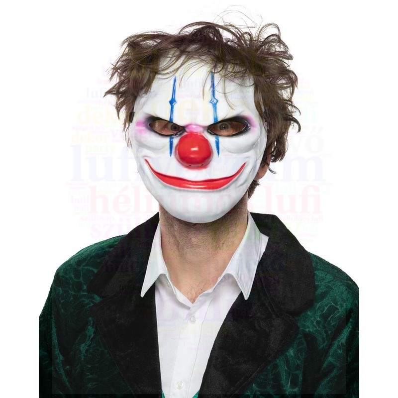 Légy a buli legfélelmetesebb vagy legőrültebb figurája a Bohóc Joker maszkkal! Ez a részletgazdag Halloween álarc a gonosz bohócok és Joker karakterek hangulatát idézi, így garantáltan kitűnsz vele minden jelmezversenyen vagy ijesztő tematikájú buliban.