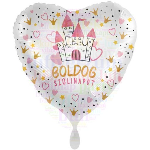 Boldog Szülinapot! Pink Hercegő Kastély Szív Fólia Léggömb
