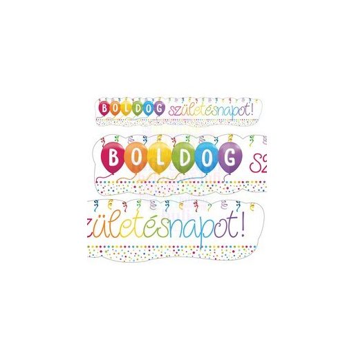 Színes karton felirat születésnapra. Mérete: 148 cm x 27 cm. Anyaga: karton.