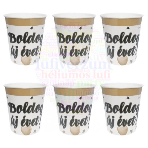 Boldog Új Évet! Elegáns Léggömbös Parti Papír Pohár - 250 ml, 6 db-os