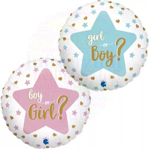 Az egyedi Boy or Girl felirat lehetőséget ad arra, hogy még izgalmasabbá tegyük a baba nemének kitalálását. A lufi ideális kiegészítő lehet bármelyik babaváró partyhoz vagy meglepetés babaváró eseményhez.