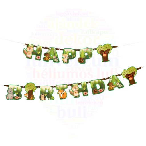 Erdei állatok szülinapi felirat/banner 210 x 16 cm