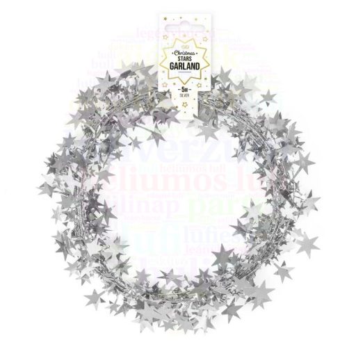 Ezüst Csillag Füzér Dekoráció Karácsonyra - 5 m
