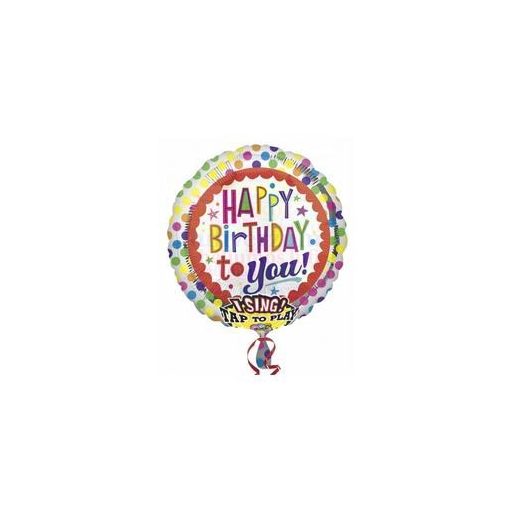 Bárki örülne egy ilyen színes pöttyös Happy Birthday to you születésnapi lufinak, és még énekelned sem kell a léggömb felköszönti helyetted is a születésnapost. Mérete: 28 inch (71 cm). Anyaga: fólia.