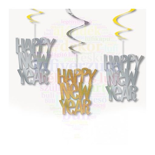 Happy New Year Feliratú Party Spirális Függő Dekoráció Szilveszterre, 3 db-os