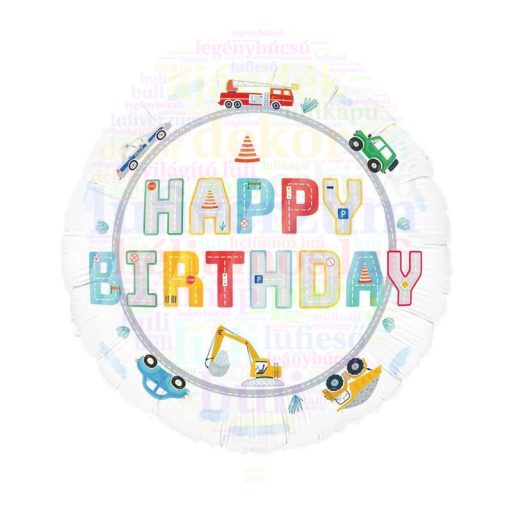 Járművek születésnapi fólia lufi - fehér - 45 cm