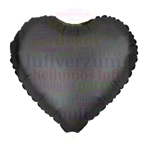 Matt fekete - Szív Fólia Léggömb 45 cm