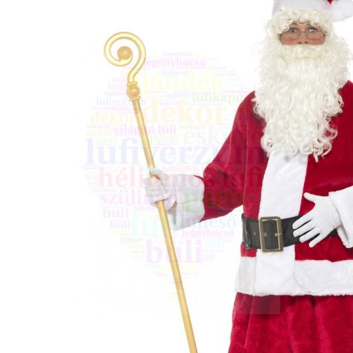 Arany-sárgás színű Mikulásbot, amely 4 részből csavarható össze. Mérete: 118 cm. Anyaga: műanyag.