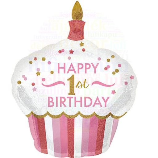 1st Birthday Cupcake Girl Super Shape Fólia Lufi - Muffin Alakú Lány Első Születésnapi Lufi