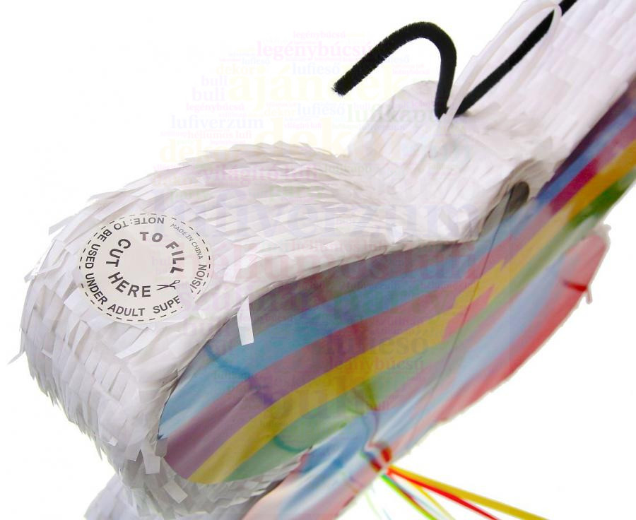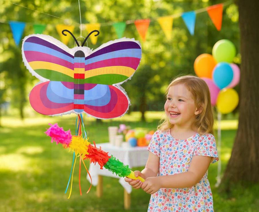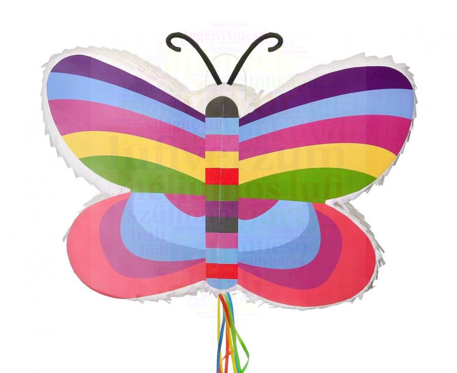 Színes, pillangó formájú parti pinata, amely tökéletes választás szülinapokra és tematikus bulikra. Megtölthető édességgel vagy apró meglepetésekkel – garantált élmény a gyerekeknek.
