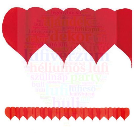 Piros Szív Alakú Szerelmes Parti Girland Dekoráció - 2x4 m