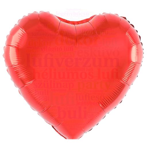 Szív formájú fólia léggömb. A lufin található szeleppel a lufi újra és újra felfújható! Mérete: 45 cm. Anyaga: fólia.
