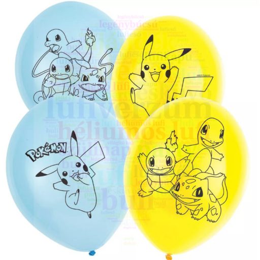 Biológiailag lebomló latex lufik Pokemon mintával - 27 cm - 6 db/csomag