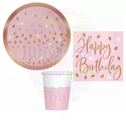 Rose Gold Birthday party szett 32 db-os 23 cm-es tányérral