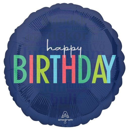 Sötétkék Happy Birthday Szülinapi Fólia Léggömb - 43 cm