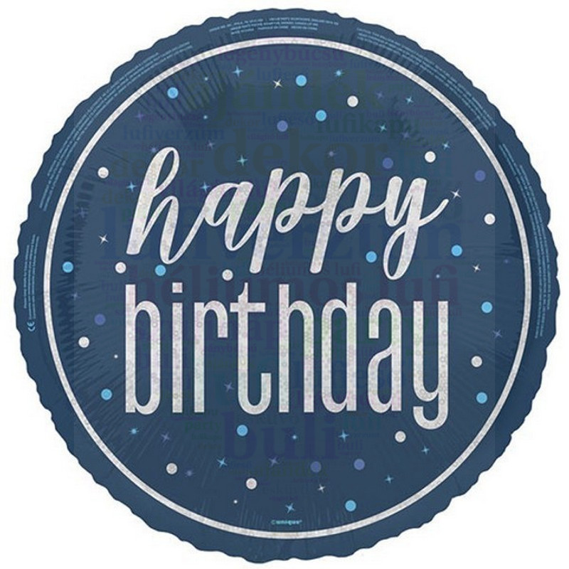 Szülinapi mintás 45 cm-es kerek fólia lufi, amely tökéletes választás, levegővel és héliummal is tölthető, látványos dekoráció önmagában vagy luficsokor részeként.