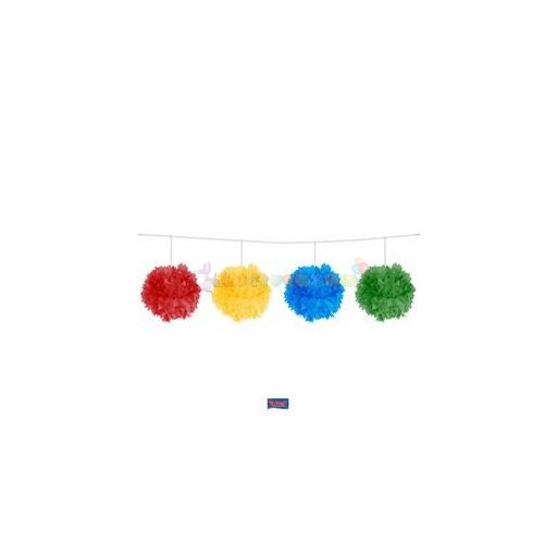 Mérete: 3 méter Anyaga: papír. 4 db pom pomot tartalmaz a csomag.