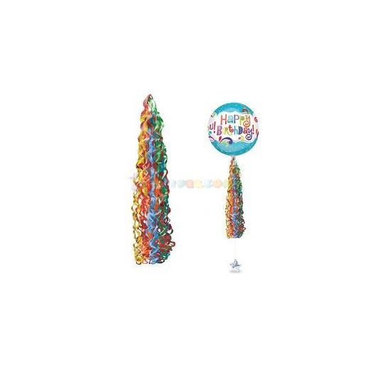 Színes spirális szalagok, melyek még szebbé varázsolják a léggömböt. Mérete: 86 cm hosszú. Anyaga: papír.