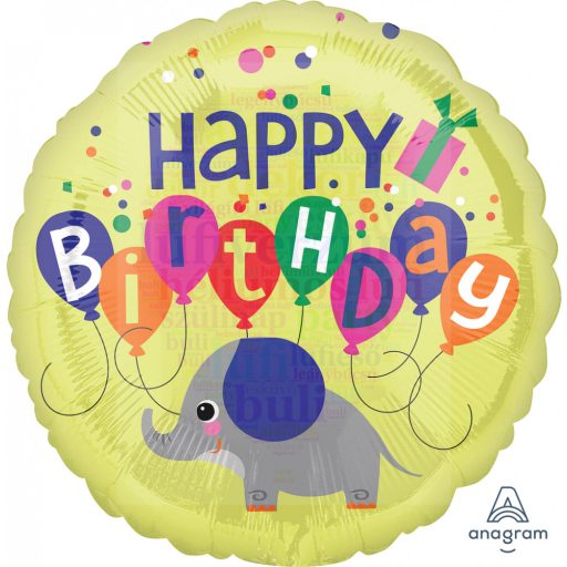Vidám elefánt születésnapi fólia lufi 43 cm