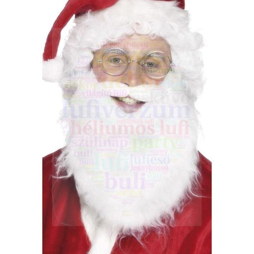 Fehér színű, vattaszerű anyagú szakáll, gumis rögzítéssel. A csomagban csak a szakáll van. Mérete: felnőtt. Egy méretben.