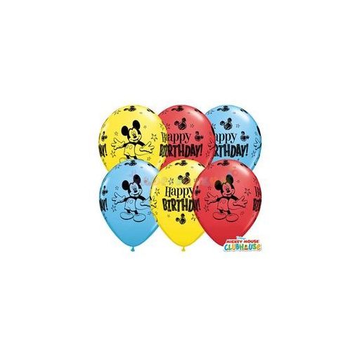Születésnapi latex party lufi, Mickey Mouse mintával, 100% környezetbarát., az ár tartalmazza a tartósító zselét is.