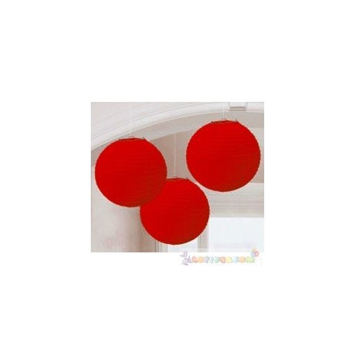 Piros Színű Party Gömb Lampion - 24 cm, 3 db-os